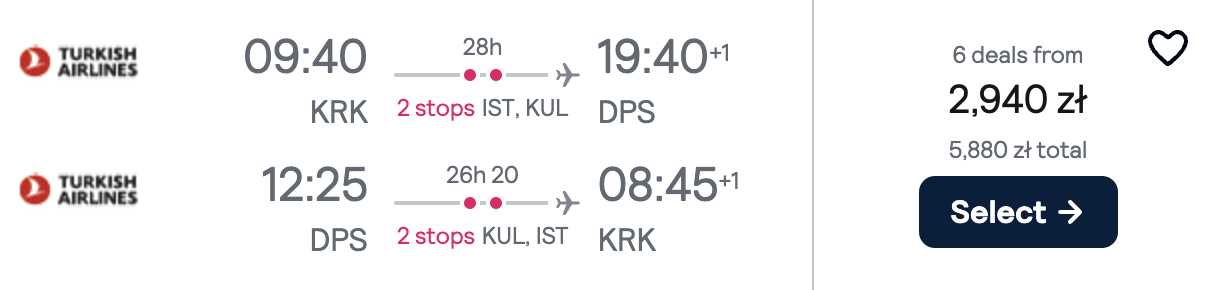 Kraków – Denpasar – Kraków >> (lepsze przesiadki)