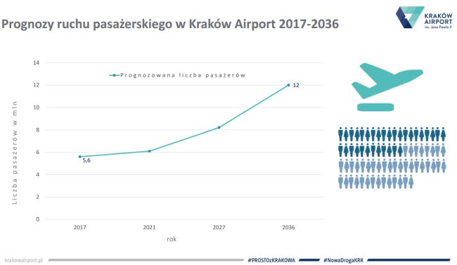 Prognozy ruchu pasażerskiego w Kraków Airport są optymistyczne – zakładają, że w latach 2017-2036 wzrost będzie stały, a docelowo w 2036 roku port ma obsłużyć 12 mln pasażerów.