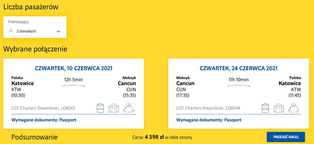 Na meksykański wypoczynek udacie się z katowickiego lotniska w Pyrzowicach 10 czerwca, a na Górny Śląsk wrócicie po 14 dniach spędzonych w Meksyku (25 czerwca – uwzględniając strefy czasowe oraz rozkład lotów). W obie strony podróżować będziecie bezpośrednio i wygodnie, na pokładzie wyczarterowanego samolotu Boeing 787 Dreamliner. W cenie biletu zabrać ze sobą będziecie mogli bagaż rejestrowany (nadawany do luku) oraz podręczny.