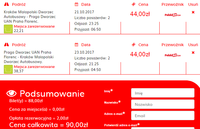 - Przejazd z Krakowa do Pragi (21 (22) – 23 (24) październik) za 90 PLN/2 os. (45 PLN/os.)