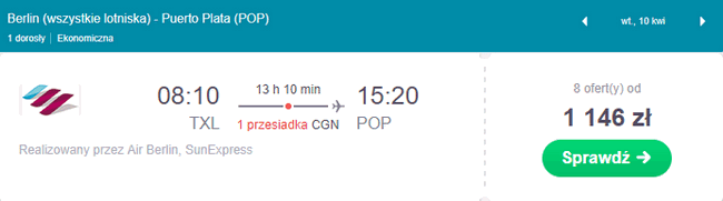 Kup bilet z Berlina (Tegel) do Puerto Plata za 1146 PLN: