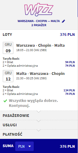 - Loty z Warszawy na Maltę (9 – 12 grudnia) za 376 PLN/2 osoby (188 PLN/osoba)