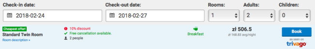 Kalkulacja ceny przeprowadzona jest przy założeniu, że w podróży biorą udział 2 osoby.