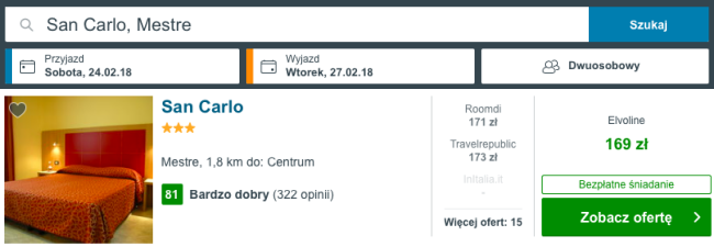 - Noclegi w hotelu San Carlo za 507 PLN/2 osoby/3 noce (253,5 PLN/osoba)