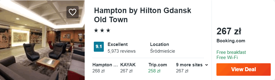 Następnie przenosimy się do Trójmiasta, gdzie rekomenduję wam noclegi w 4* hotelu Hampton by Hilton Gdańsk Old Town, który położony jest w sąsiedztwie Bazylika Mariackiej, a od fontanny Neptuna oddalony jest o 150 metrów. W cenie zakwaterowania zapewnione będziecie mieli codzienne śniadania, dostęp do sieci WiFi oraz dobrze wyposażonego centrum fitness.