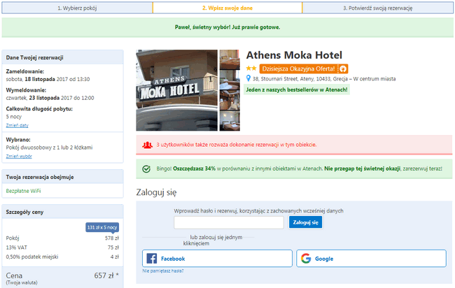 - Noclegi w Athens Moka Hotel za 657 PLN/2 osoby (328.5 PLN/osoba)
