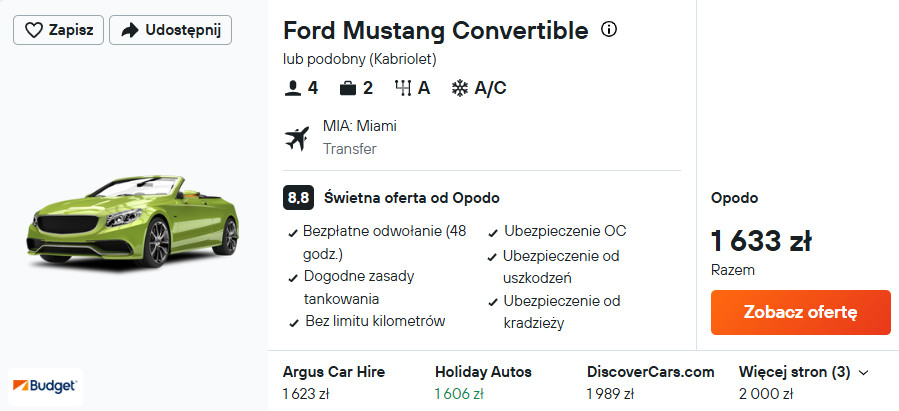 Poczuj wiatr we włosach i wolność na słonecznych ulicach Miami! We wrześniu mniej turystów, więcej radości — Mustang cabrio to idealny sposób, by poczuć klimat Florydy. Wsiadasz?