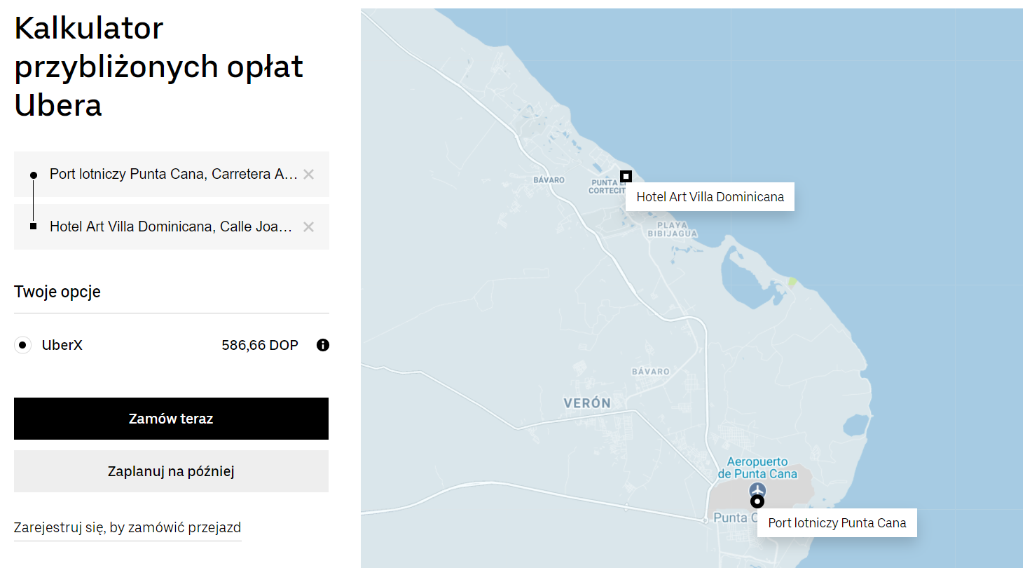 Na miejscu zatrzymacie się w kurorcie Bavaro, w hotelu Art Villa Dominicana, który od publicznej plaży oddalony jest o 900 metrów. Z międzynarodowego lotniska w Punta Canie w okolice miejsca zakwaterowania dojedziecie Uberem za 587 DOP (ok. 39 PLN).