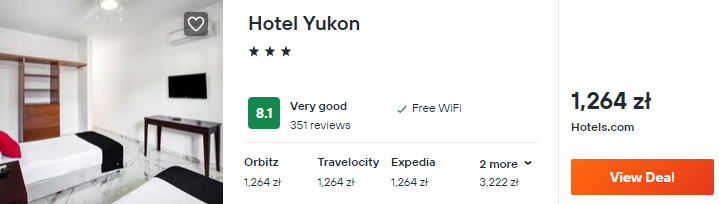 Na Jukatanie wybrałem dla was zakwaterowanie w 3* hotelu Yukon. Obiekt usytuowany jest w sąsiedztwie plaży. Ponadto będziecie mogli skorzystać z prywatnego basenu zewnętrznego.