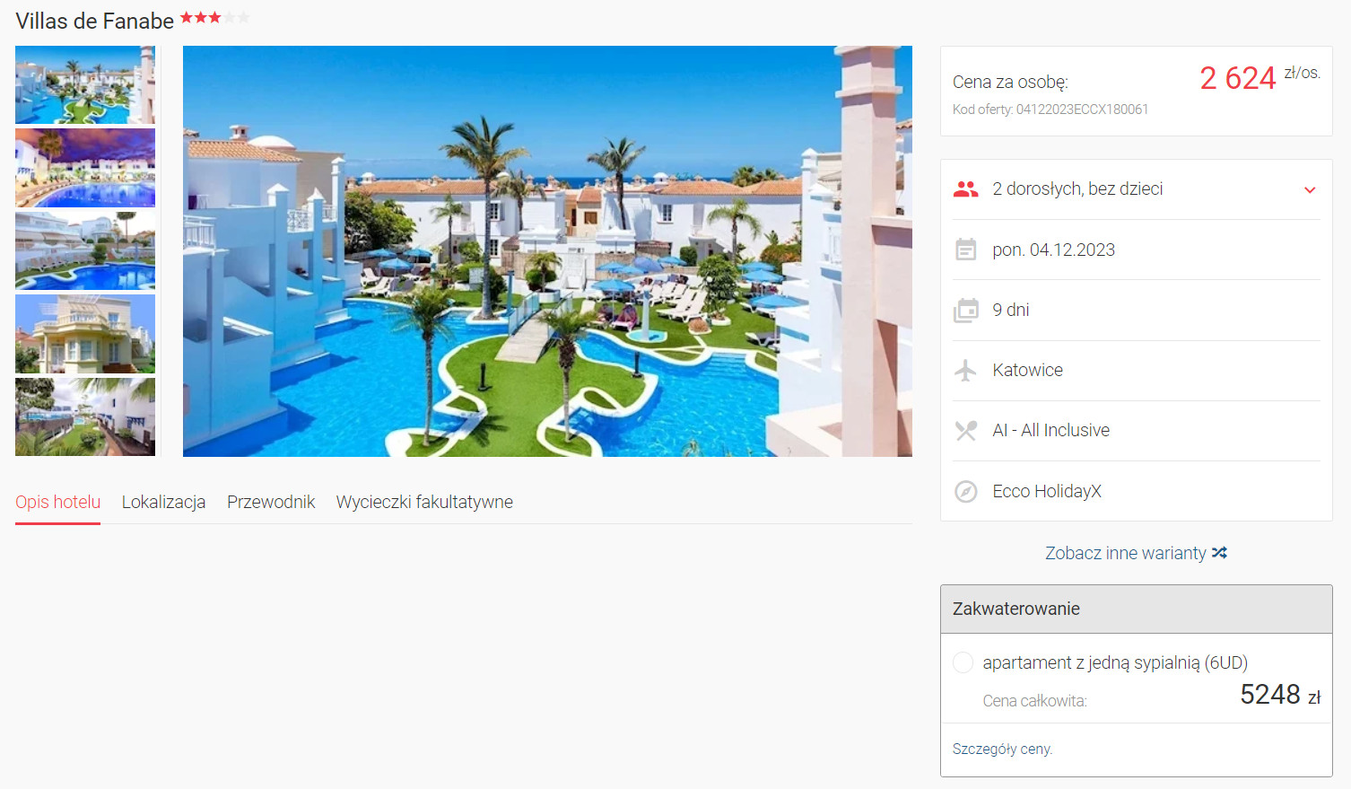 W cenie zapewnione są przeloty, transfery na trasie lotnisko – hotel – lotnisko, opieka rezydenta, ubezpieczenie oraz wyżywienie w formule all inclusive.