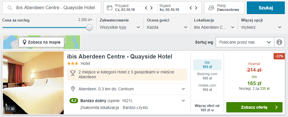 Przeloty realizowane są na pokładzie węgierskiej linii lotniczej Wizz Air. Aby uzyskać taką cenę, musisz być członkiem Wizz Discount Club. Hotel ibis Aberdeen Centre – Quayside jest położony w centrum miasta, 5 minut spacerem od najbliższego przystanku autobusowego. Pokoje wyposażone są w telewizor z płaskim ekranem i dostępem do kanałów satelitarnych oraz zestaw do parzenia kawy i herbaty. W każdym znajduje się także łazienka z suszarką do włosów.