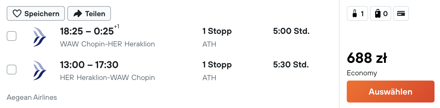 Poniższe propozycje to podróże z Warszawy, z Aegean Airlines. Możesz zarezerwować loty do Grecji (Ateny i wyspy), Egiptu (Kair), a nawet do Iraku (Irbil). Najtańsze bilety możesz zarezerwować już za 523 PLN, a po drodze przesiądziesz się w Atenach.