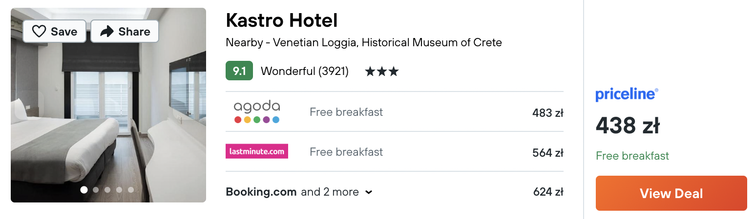 W Heraklionie polecam noclegi w 3* hotelu Kastro. W cenę zakwaterowania wliczone są śniadania. Obiekt znajduje się niedaleko centrum miasta.