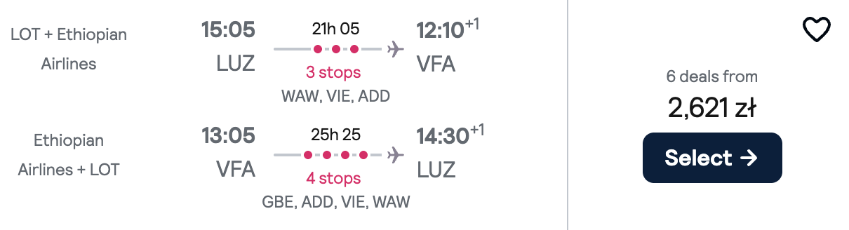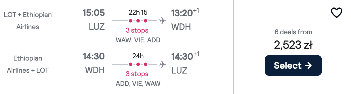 Na wycieczkę polecisz z Lublina, Bydgoszczy lub Szczecina z PLL LOT oraz Ethiopian Airlines z przesiadkami w Warszawie i Addis Abebie (oraz stopem technicznym w Wiedniu, bez opuszczania samolotu). W cenę wliczony jest bagaż rejestrowany i podręczny.