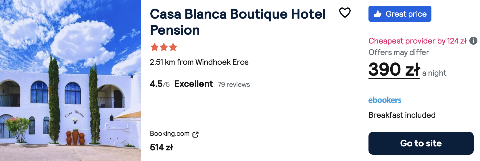 W Namibii proponuję nocleg w Casa Blanca Boutique Hotel Pension. W cenę zakwaterowania wliczono śniadanie.