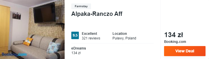 Dowiedzcie się więcej o tym hoteluAlpaka-Ranczo AFF to rodzinne gospodarstwo agroturystyczne położone w Puławach. Do waszej dyspozycji będzie tam zakwaterowanie w pokojach z prywatną łazienką, telewizorem LCD, wygodnym łóżkiem oraz ekspresem do kawy.
