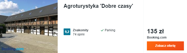 Dowiedzcie się więcej o tym hoteluW Agroturystyce „Dobre Czasy” czekają na was urządzone w tradycyjnym stylu pokoje z prywatną łazienką. Do waszej dyspozycji będzie także wspólna kuchnia, część wypoczynkowa oraz miejsce na ognisko lub grilla.