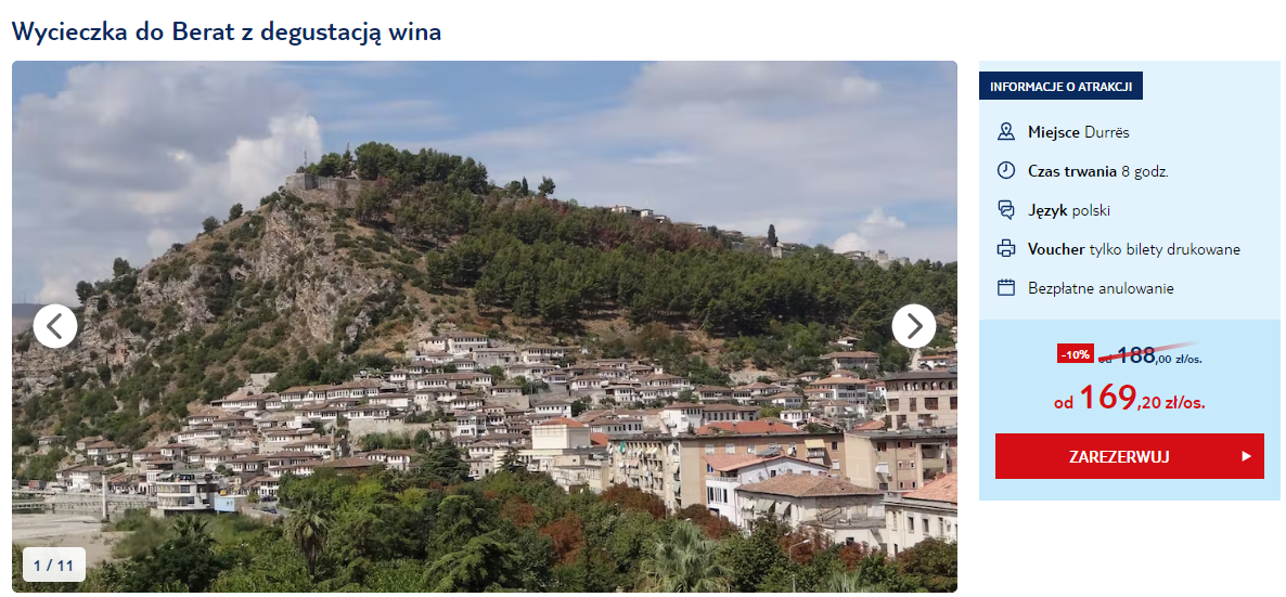 Pełnoletnim podróżnym polecam wycieczkę do wpisanego na listę światowego dziedzictwa UNESCO miasta Berat z degustacją wina. W lokalnej winnicy będziecie mieli szansę zgłębić tajniki produkcji tego szlachetnego trunku.