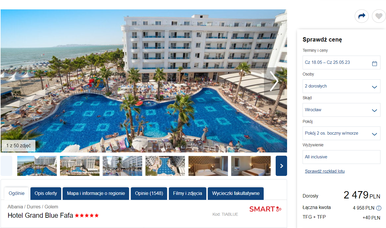 Na Bałkany udasz się w terminie 18-25 maja. Czeka cię bezpośredni lot do Tirany, a jako początkowe miejsce wyjazdu wybrano Wrocław. Bez dodatkowych opłat zabierzesz ze sobą bagaż podręczny i rejestrowany. W cenę wliczono również podstawowe ubezpieczenie, opiekę polskiego rezydenta i transfery lotniskowe.