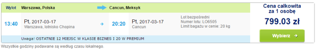 Bezpośredni lot z Warszawy do Meksyku (Cancun) zarezerwujecie klikając w poniższy link: