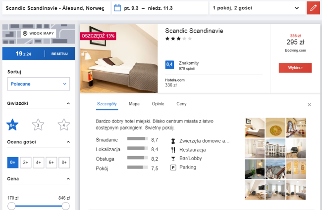 Hotel Scandic Scandinavie mieści się w secesyjnym budynku z 1905 roku, który położony jest zaledwie 100 metrów od Muzeum Miejskiego w Ålesund. W obiekcie do dyspozycji gości jest bezpłatne WiFi oraz pokoje wyposażone w telewizor z dostępem do kanałów kablowych i zestaw kosmetyków marki Face Stockholm.