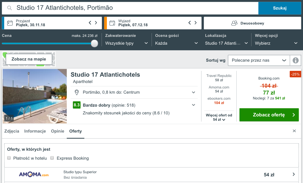 Zakwaterowanie w Studio 17 Atlantichotels za 378 PLN / 2 osoby / 7 nocy (189 PLN / osoba)