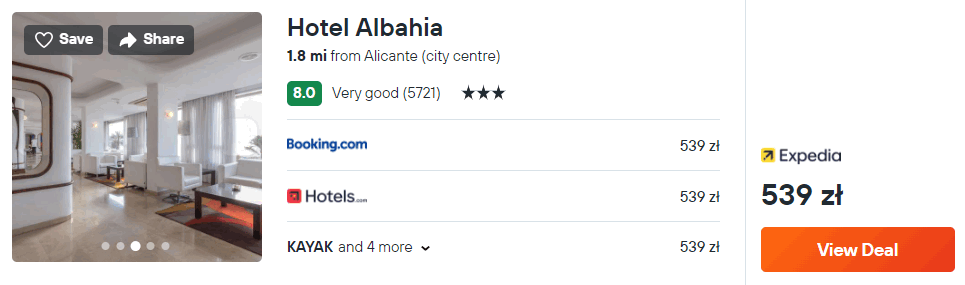 W Alicante rekomenduję noclegi w 3* hotelu Albahia. Każdy pokój wyposażony jest w klimatyzację z funkcją ogrzewania oraz telewizor LCD. W łazience jest prysznic oraz suszarka do włosów. Na terenie obiektu mieści się odkryty basen. We wszystkich pomieszczeniach będziesz miał zapewniony dostęp do sieci WiFi.