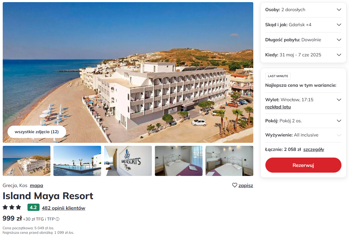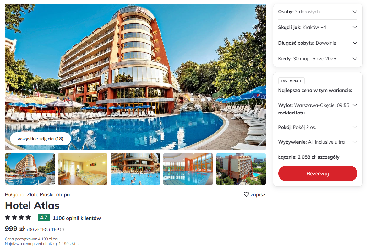 Poniżej znajdziesz wybrane przeze mnie najlepsze propozycje wczasów organizowanych przez biuro podróży Itaka za 999 PLN/tydzień. Dostępne są wyloty z kilku miast w Polsce (szczegóły poniżej) oraz takie kierunki, jak Grecja, Egipt, Turcja, Bułgaria oraz Albania. Także w wydaniu ultra all inclusive (z 24-godzinnym wyżywieniem i napojami).