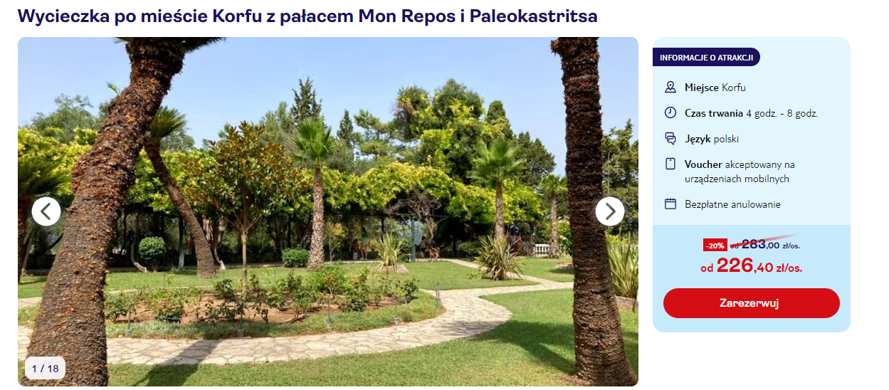 Korfu od 2103 PLN na 7 dni (lotnisko wylotu: Kraków)