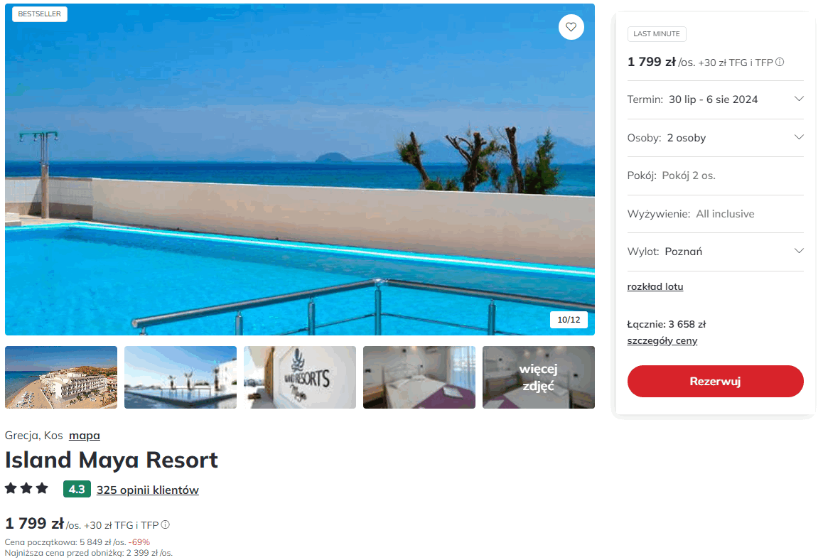 W cenę pakietu wliczono loty z bagażem rejestrowanym, transfery na trasie lotnisko – hotel – lotnisko, podstawowe ubezpieczenie, opiekę rezydenta oraz all inclusive.