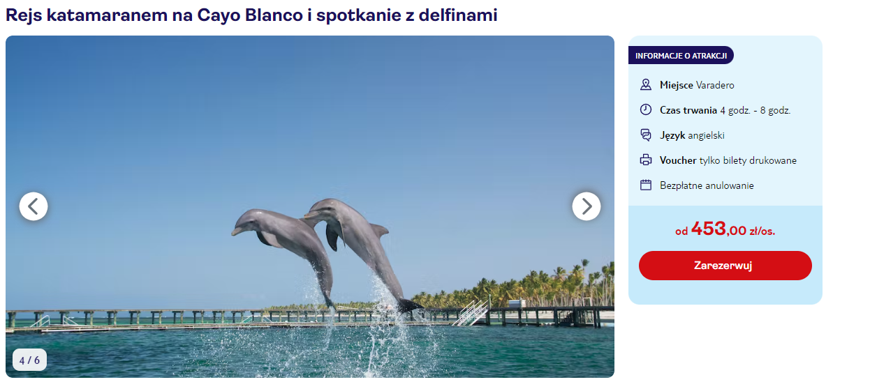 Chciałbyś zobaczyć coś niezwykłego w czasie urlopu? Zarezerwuj rejs katamaranem na Cayo Blanco, by spotkać delfiny!