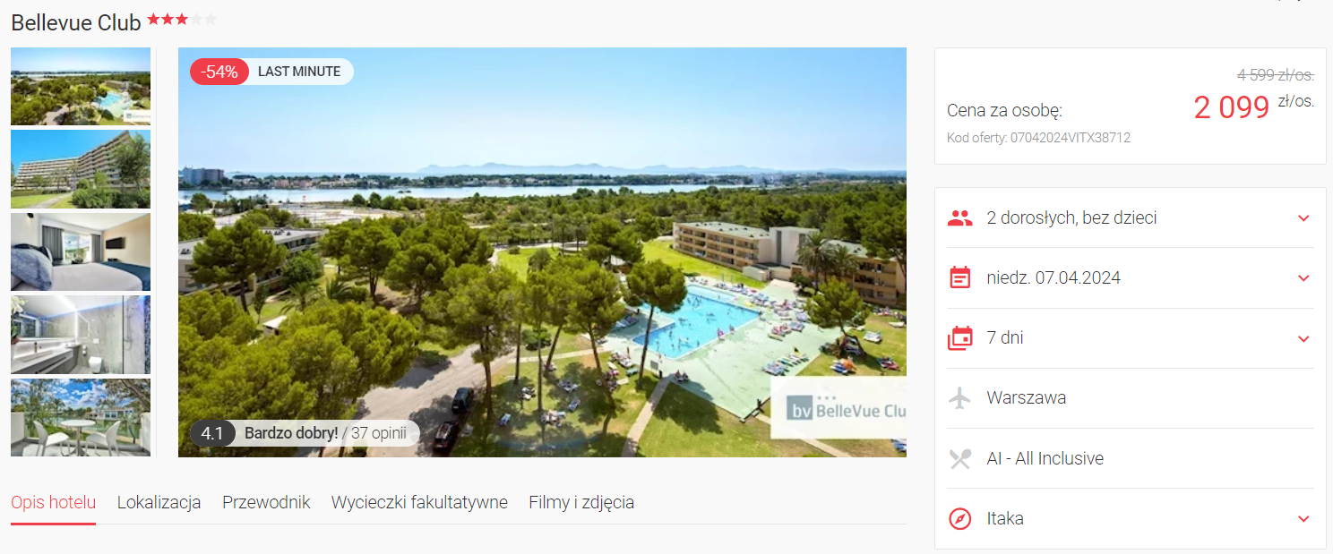 W cenie zapewnione są przeloty (z bagażem rejestrowanym), transfery na trasie lotnisko – hotel – lotnisko, opieka rezydenta, ubezpieczenie oraz wyżywienie w formule all inclusive.