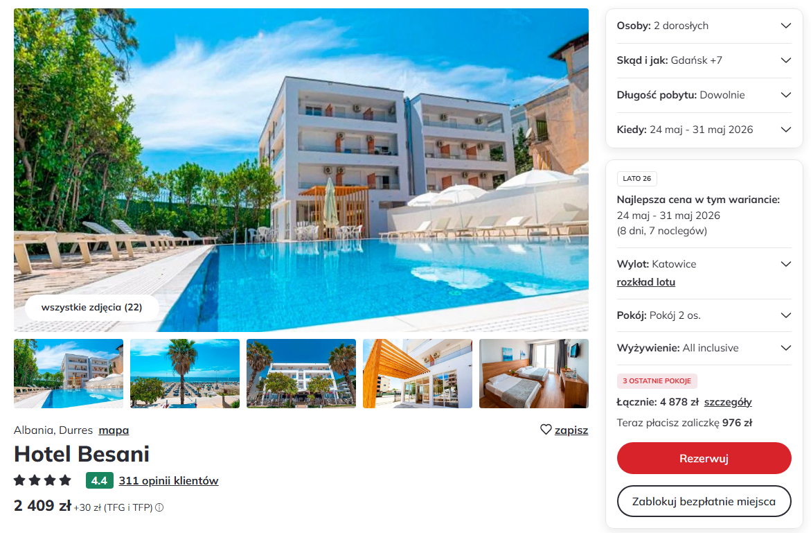 Wiosenne all inclusive w Albanii za 2409 PLN 🍹🍽️ 4* hotel tuż przy plaży w Durres 🏖️🌊