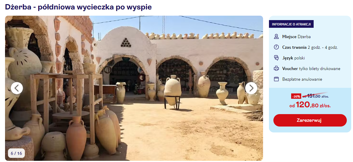 Lubicie również nieco pozwiedzać? Zarezerwujcie dla siebie półdniową wycieczkę po Dżerbie, by dowiedzieć się więcej na temat tego niezwykłego miejsca.