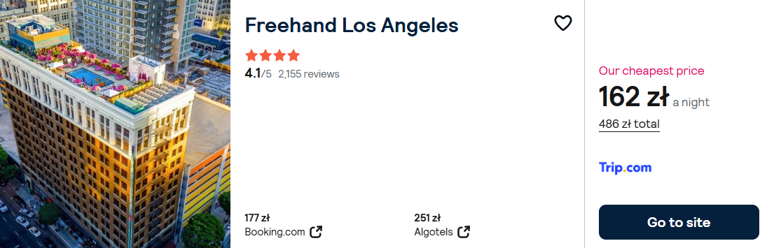 Natomiast w Los Angeles wybierz świetnie oceniany 4* hotel Freehand. Z obiektu możesz podziwiać panoramę miasta oraz odpocząć nad basenem.