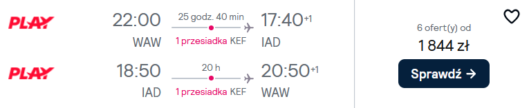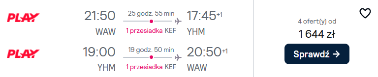 Do Ameryki wybierzesz się w terminach od czerwca do lipca 2025 r. z lotniska w Warszawie.Do Kanady lub USA polecisz linią lotniczą Play, z przesiadką na Islandii. Dłuższe przystanki w Reykjavíku to świetna okazja na szybki city break. W cenę biletu wliczony jest bagaż podręczny.