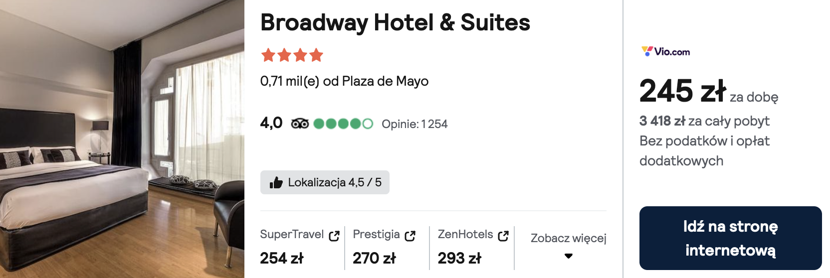 W Buenos Aires polecam 4* hotel Broadway. Będzie to świetna baza wypadowa do zwiedzania miasta. Na miejscu znajdziesz strefę relaksu i komfortowo urządzony pokój.