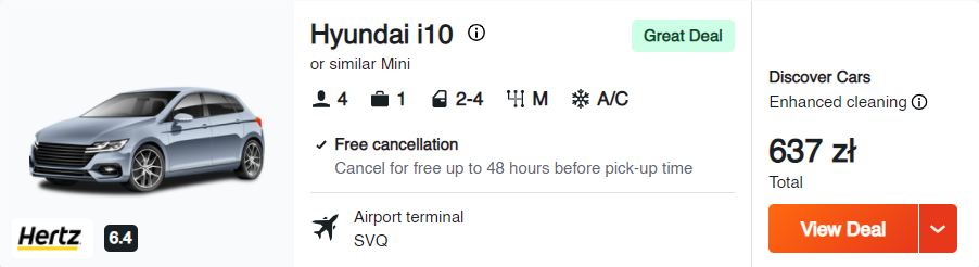 Za loty w dwie strony oraz samochód zapłacicie tylko 467 PLN za osobę, przy 2 podróżnych.