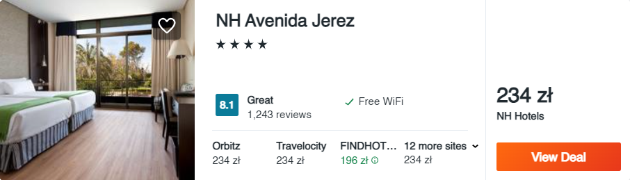 W Jerez de La Frontera na swój pobyt wybierzcie luksusowy 4* hotel NH Avenida Jerez. Do dyspozycji gości oddano m.in. świetną restaurację i piękny ogród.
