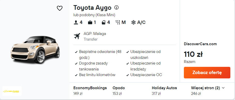 Do miejsca zakwaterowania lub na Gibraltar, łatwo i wygodnie dojedziesz samochodem. Dlatego zachęcam cię do wypożyczenia auta zaraz po przylocie do Malagi.