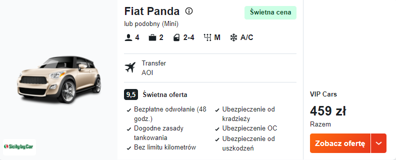 Samochód 459 PLN/pobyt