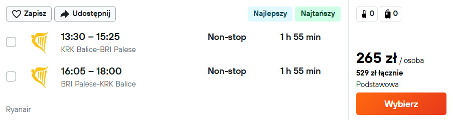 Wylot do Bari zaplanowany jest na piątek (23 stycznia) z Krakowa o godzenie 13:30. W drogę powrotną do Małopolski wyruszysz w niedzielę (25 stycznia) o godzinie 16:05. W obie strony podróżować będziesz linią Ryanair z bagażem podręcznym.