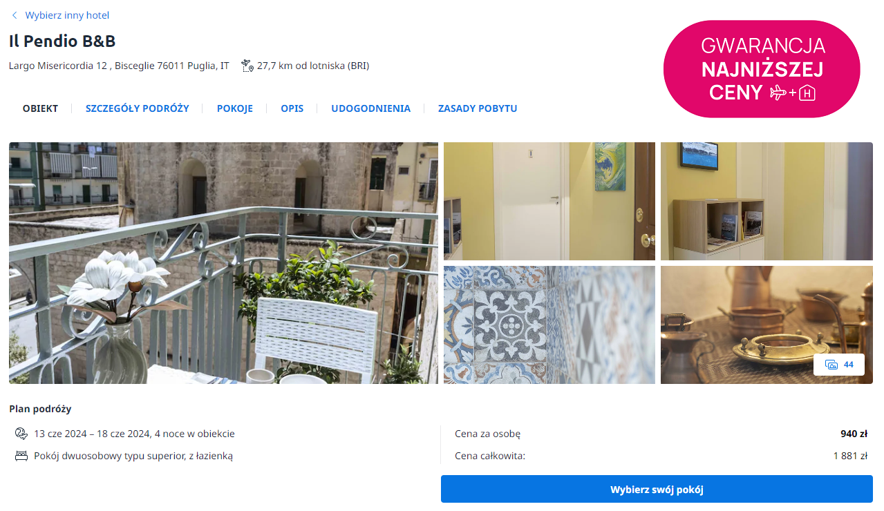 Do Włoch wybierzesz się w terminie obejmującym weekend (czwartek – poniedziałek) 13 – 17 czerwca. Czeka cię bezpośredni lot z podwarszawskiego Modlina do Bari, linią Ryanair. W cenie możesz zabrać bagaż podręczny.