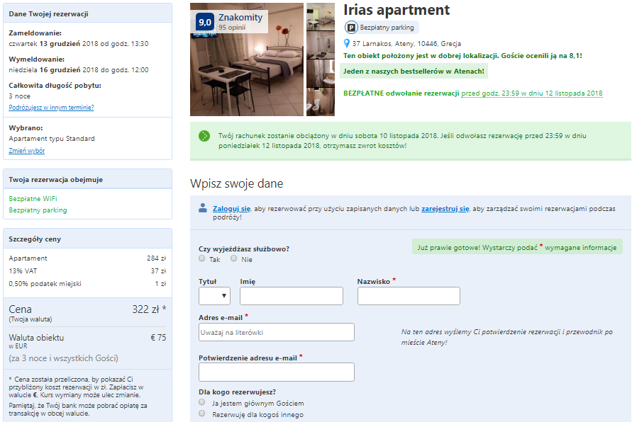 Zakwaterowanie w w Irias Apartment za 322 PLN / 2 osoby / 3 noce (161 PLN / osoba)