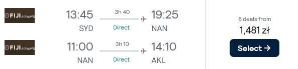 Podróżować będziesz liniami China Eastern i Fiji Airways. W China Eastern w cenę wliczony jest bagaż rejestrowany. W Fiji Airways będziesz mógł go dokupić za 424 PLN za oba loty.
