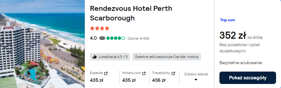 Aklimatyzację w Australii oraz wypoczynek po długiej podróży zacznij od pobytu w komfortowym 4* Rendezvous Hotel Perth Scarborough.