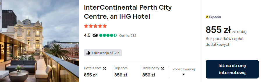 Na koniec propozycja z wyższej półki. Jeśli marzysz o luksusie na najwyższym, światowym poziomie, zarezerwuj wspaniały 5* InterContinental Perth City Centre, an IHG Hotel.