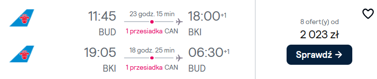 Do Azji udasz się w lutym i marcu 2025 r. z lotniska w Budapeszcie. Na Borneo polecisz linią China Southern z przesiadką w Kantonie. Natomiast do Kambodży linią Air China z przesiadką w Pekinie. W obu przypadkach w cenę biletu wliczony jest bagaż podręczny i rejestrowany.