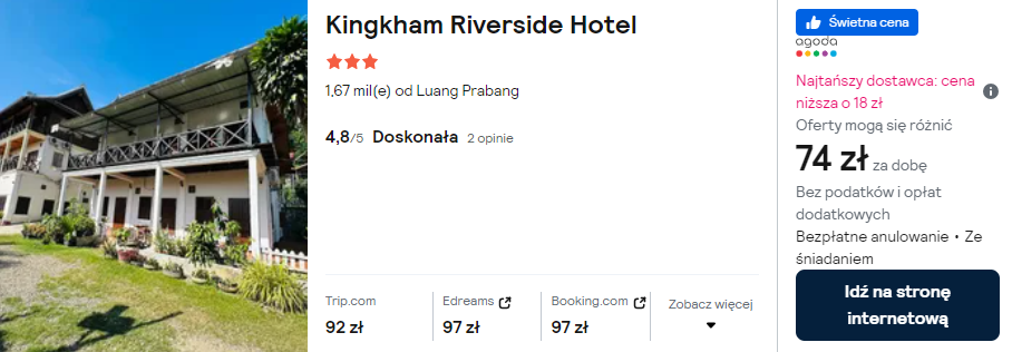 W Luang Prabang wybierz noclegi w pobliżu zabytkowego starego miasta. Rekomenduję pobyt w 3* hotelu Kingkham Riverside.