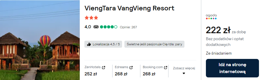 3* ViengTara VangVieng Resort to prawdopodobnie najpiękniej położony hotel w okolicach VangVieng. Obiekt oferuje lokalizację pośród pól ryżowych ze wspaniałym widokiem na góry.